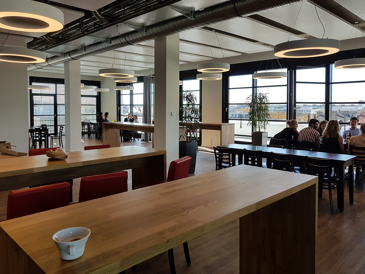 Plenty of seating in the kitchen. Some nice views across the roofs of Munich